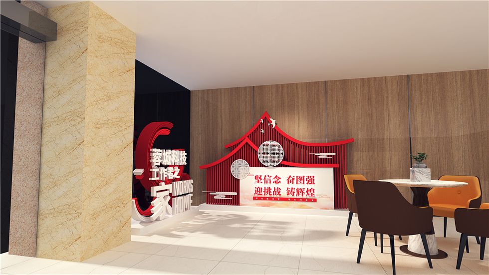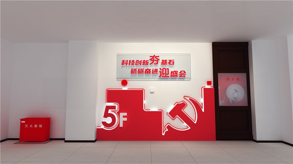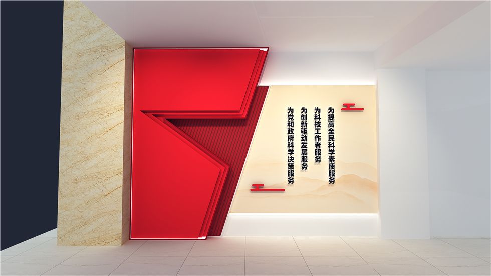 本次设计中励景团队厚植党建文化,打造柔性展示空间,尊重空间原始架构,发散思维,延伸出氛围契合的文化装置,兼顾党建色彩、简约空间、便捷更新,展现协会一心向党的热情;展现党建工作、廉洁文化的建设情况;展现成都市科学技术协会的职责定位、文化内涵;展现成都市科学技术协会的员工活动和人才队伍的的建设规划。