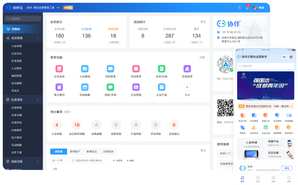 专业的商协会运营管理系统,已为1000+协会、商会或学会等社会组织机构及企业提供了安全高效的数字化协作管理系统及相关数字营销服务。