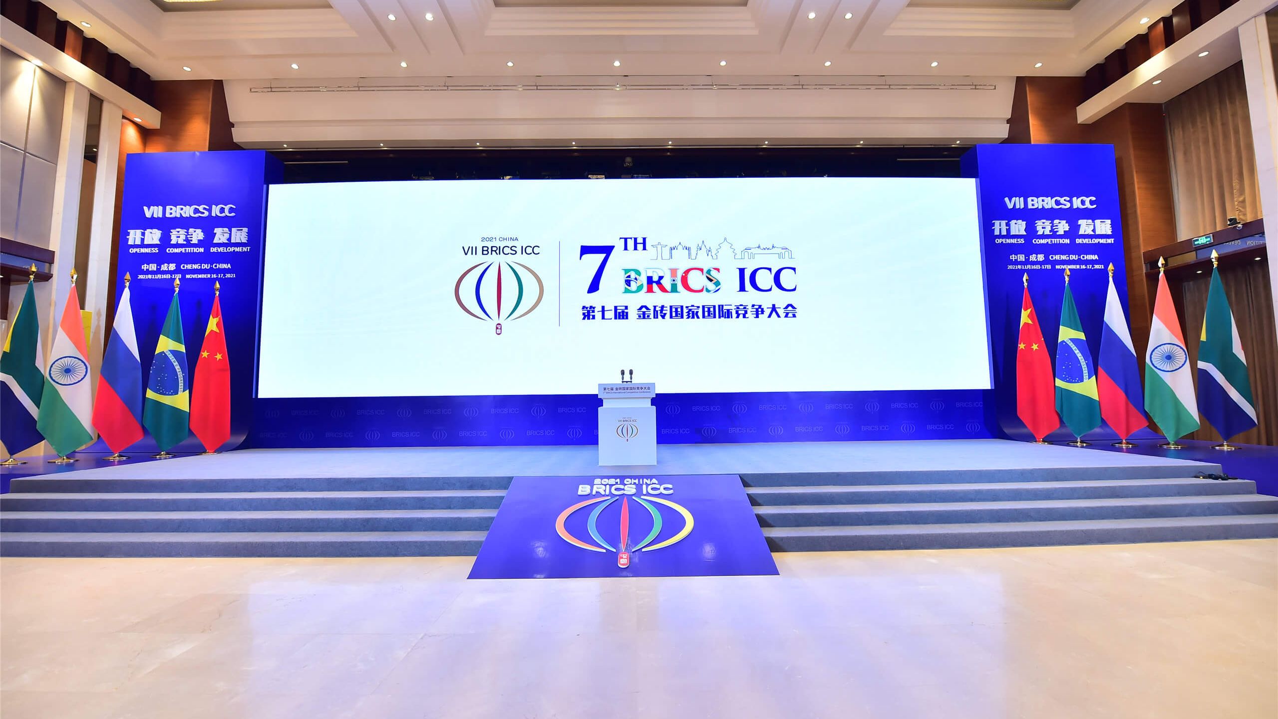 金砖国家国际竞争大会是金砖国家领导人会晤框架下重要的务实活动。本次大会以“竞争·开放·发展”为主题,设北京和成都两个会场,首次实现线上线下同步举办,包括开幕大会、五场分论坛、六场线上双边会谈、两场线上备忘录签署仪式和闭幕式。